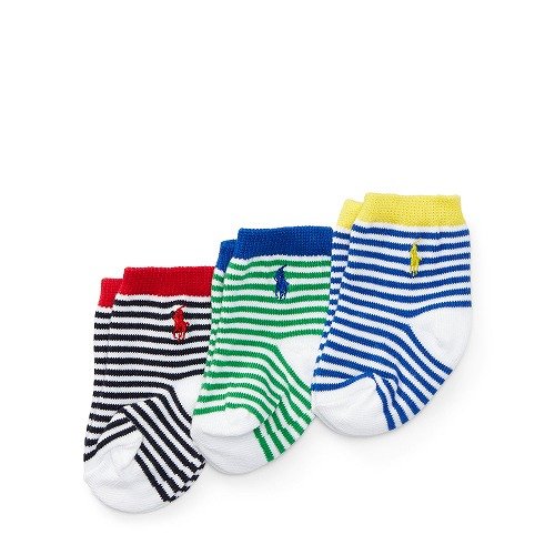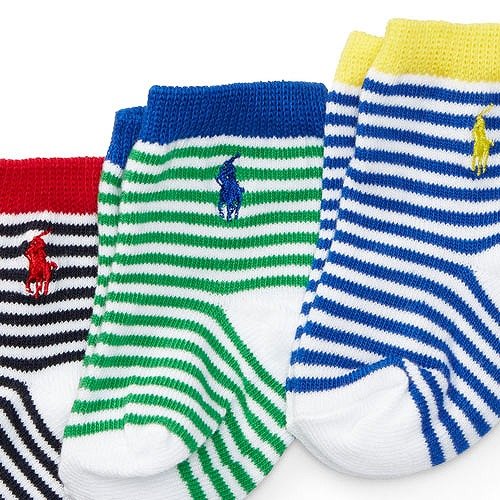 ポロ ラルフローレン ポニー付・ストライプクルーソックス・3足セット[マルチ](男の子0-6カ月用)6Mサイズ [並行輸入品]
