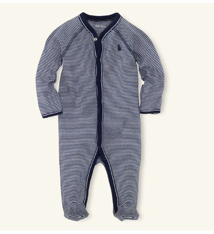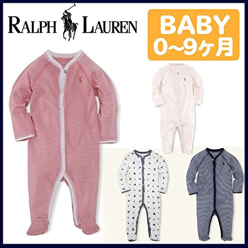 Polo Ralph Lauren/ポロ ラルフ ローレン GIRL SOLID ONE PIECE COVERALL 長袖ロンパース (サイズ:9m、カラー:French navy / stripe) [並行輸入品]