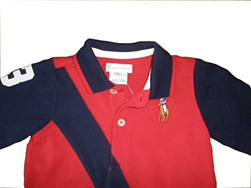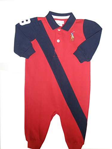 POLO RALPH LAUREN(ポロラルフローレン) 6か月用ベビーのロンパースです。 素材:コットン100% 色:赤と紺色に白で3のロゴです。