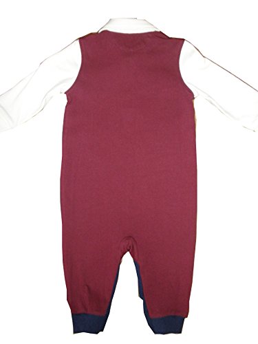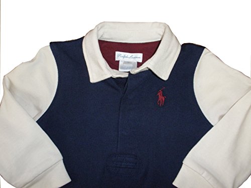 POLO RALPH LAUREN(ポロラルフローレン) 9か月用ベビーのロンパースです。 素材:コットン100% 色:表、紺色に生成りの襟と袖、ワンポイントは臙脂です。裏、臙脂に袖は生成りです。
