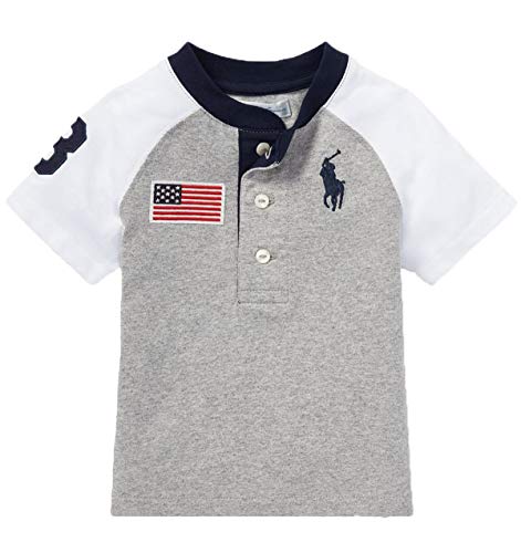 [POLO RALPH LAUREN (ポロラルフローレン)] 半袖ビッグポニーコットンジャージーヘンリーTシャツ ベビー 男の子 グレー 90cm (24ヶ月) [並行輸入品]