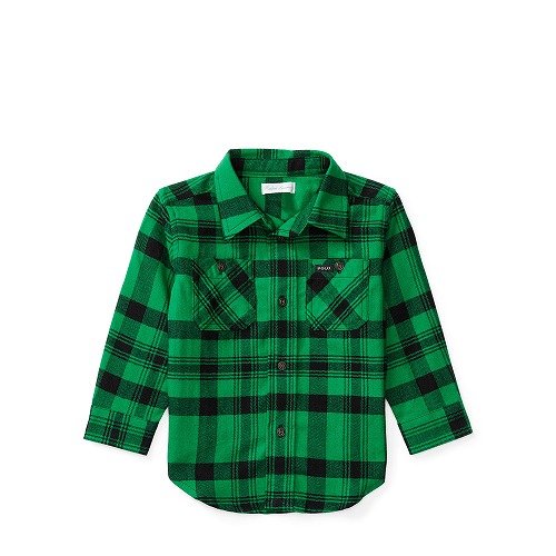 ポロラルフローレン チェック柄 プレイドコットン 長袖シャツ グリーンマルチ (男の子12~24か月用) 12M [並行輸入品]