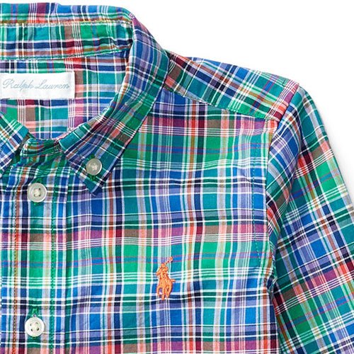 【ラルフローレン】プレイド・ポプリン・長袖シャツ[グリーンマルチ](男の子12~24か月用) [並行輸入品]