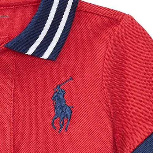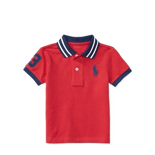 ポロ ラルフローレン ビッグポニー・ストライプネック・半袖ポロシャツ[レッド](男の子12~24か月用)24Mサイズ [並行輸入品]