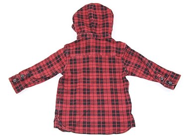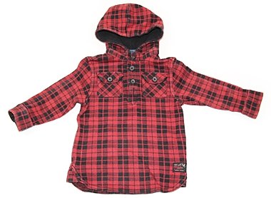実際のサイズ表記は18Mです。暖かみのあるカットソーで、フードつき。やや毛羽立ち・スレ感がありますが目立った汚れはありません。まだまだ普段着として活躍してくれそうです。