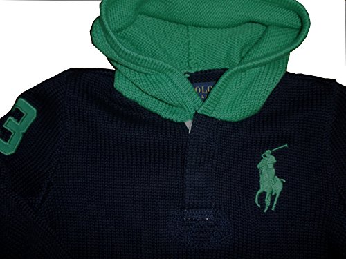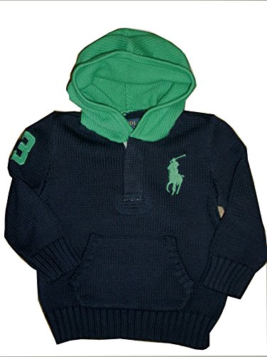 ラルフローレン ボーイズのビックポニーパーカーです。 色:ブラックにグリーンのフード、グリーンのビックポニー 素材:コットン100% ニットのセーター仕様です。