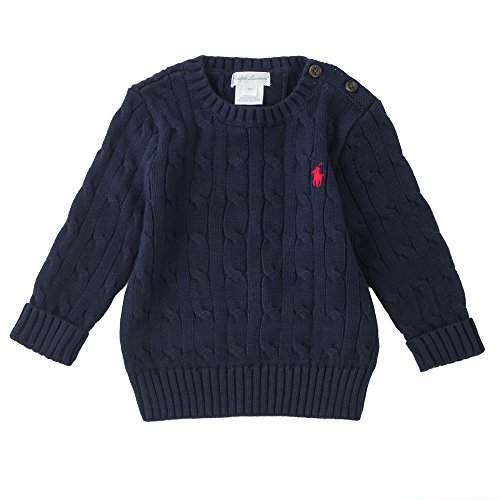 Polo Ralph Lauren/ポロ ラルフ ローレン Cable-Knit cotton sweater ケーブルニット 【320613461001(795335)】 (サイズ:12m、カラー:Hunter navy) [並行輸入品]