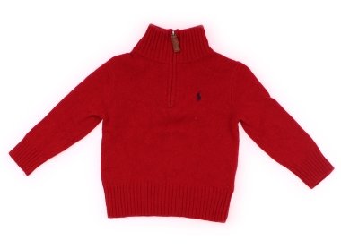 - やや深みのあるレッドカラーにPOLO Ralph Laurenのロゴがあり、チャックの牛革の引手がお洒落なニットです。毛羽立ちがありますが、目立つ汚れはなくまだまだお使いいただけます。