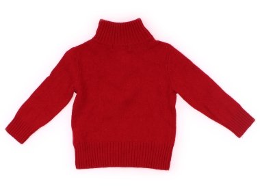 やや深みのあるレッドカラーにPOLO Ralph Laurenのロゴがあり、チャックの牛革の引手がお洒落なニットです。毛羽立ちがありますが、目立つ汚れはなくまだまだお使いいただけます。