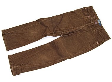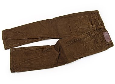 - コーデュロイ生地。サイズ調整ゴムが付いています。やや白っぽいスレ感がありますがまだまだ普段着として活躍してくれそうです。