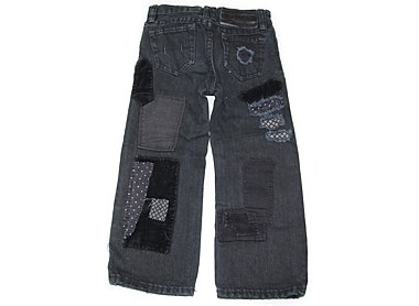 - 実際のサイズ表記は3Tです。デニム風のカジュアルなハードめ素材に様々なリメイクがされていてとってもオシャレ。ヴィンテージ感がたまりません。元々のデザインか不明ですが前のダメージの当て布が、二か所はずれています。