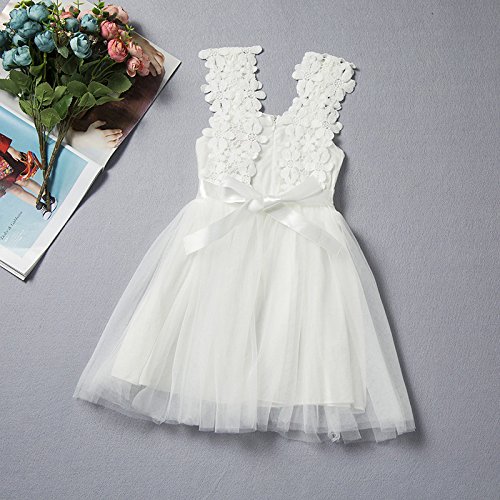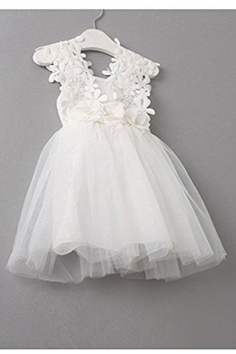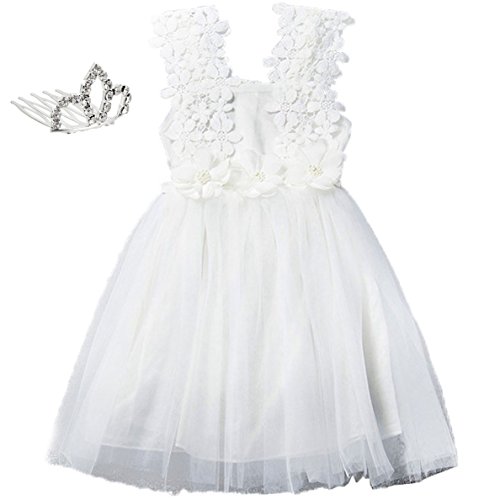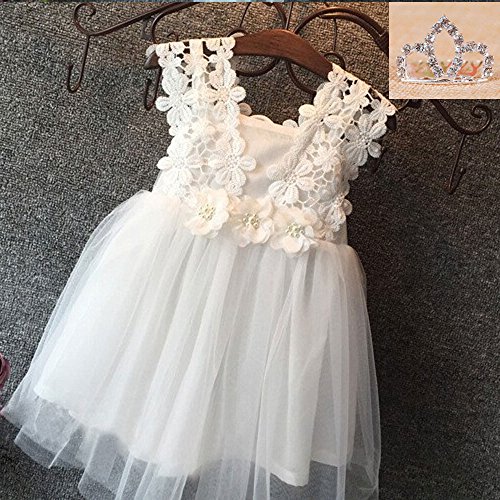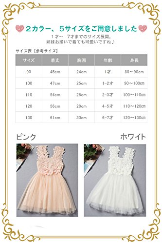 (POMAIKAI) 子供 ワンピース 花柄 フォーマル ドレス 結婚式 発表会 ティアラ セット (ホワイト90)