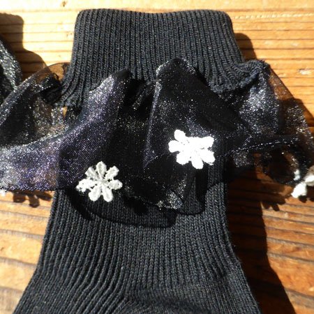 ふんわりとしたオーガンジーレースにお花モチーフがついたフォーマルなソックスです。