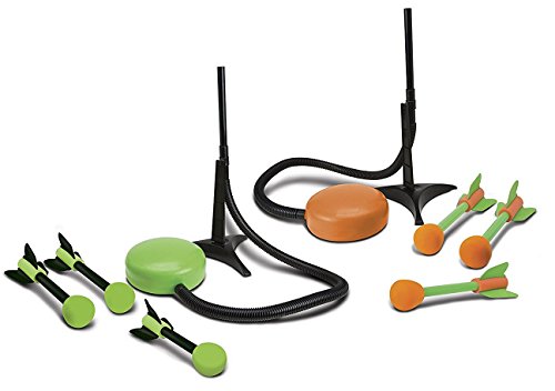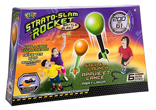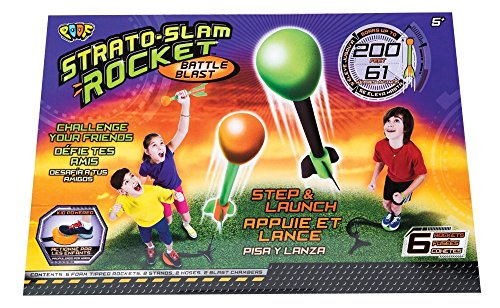 POOF Strato-Slam Rocket Battle Blast uses air power to launch high-flying rockets over 200-feet in the air! Provides countless hours of safe outdoor fun! Made of soft, safe foam, these rockets are launched into the sky by an air-powered blast chamber that