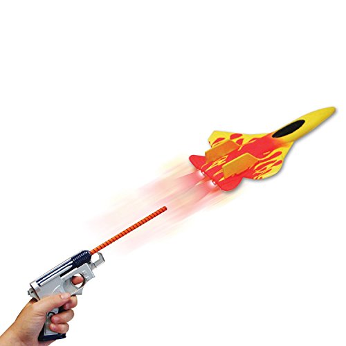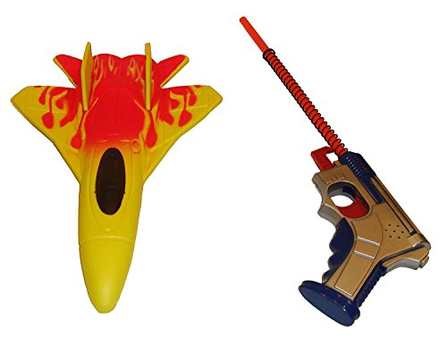 - Includes a spring-loaded launcher with a cool afterburner sound effect when plane is released screaming through the air
