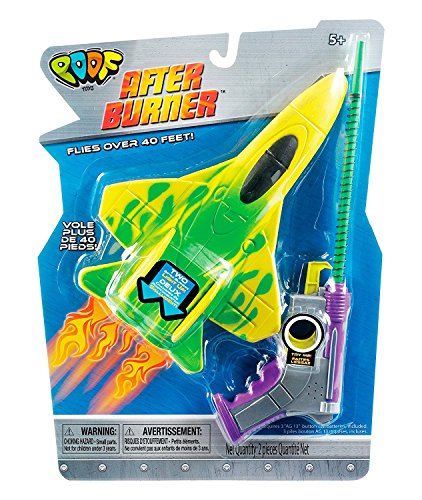 The POOF-Slinky 2131BL POOF After Burner Foam Plane is a soft, but fierce glider that maneuvers and soars over 40-feet through air to provide safe and exciting outdoors aerial action. This flying toy includes a spring-loaded launcher that inserts into the