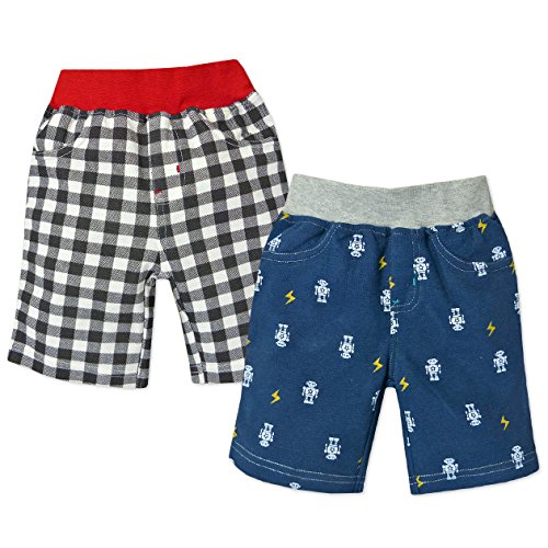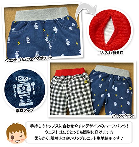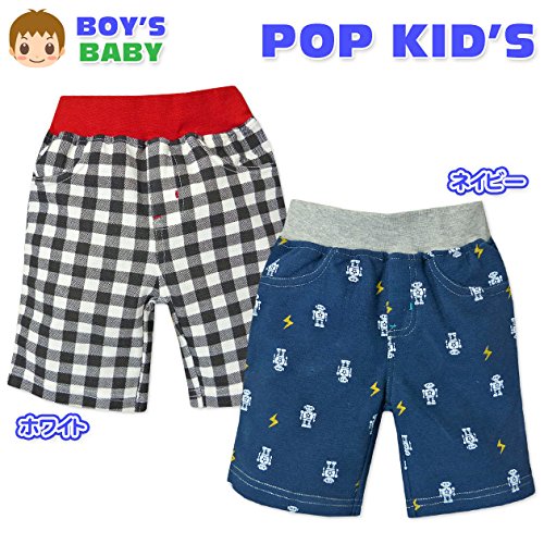 ベビー服 男の子 ハーフ パンツ ボトム リップルニット ブロックチェック柄 ロボット柄 フェイクポケット 男児 ベビー (1.ホワイト/80cm)