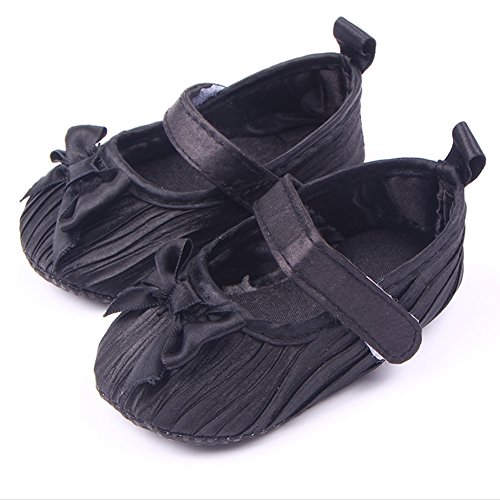 新生児 ベビーガールズ シューズ 靴 滑り止め ソフトソール 赤ちゃん 女の子 ファーストシューズ (12-18M, ブラック)