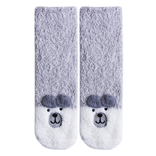 大人 キッズ ギフト セット ボックス サンタ コーラル フリース ソックス 冬 クリスマス 動物 ソックス (大人, lucky bear)