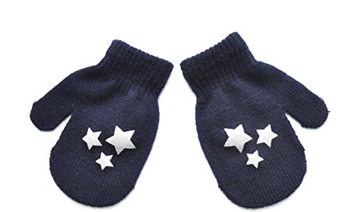 かわいい 幼児 ドット 星 パターン 手袋 3-6歳 キッズ ミトン ソフト 暖かい 編み 手袋 Fashion Gloves (ブルー 星)