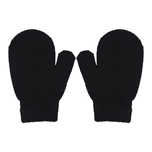 幼児 ベビー ソフト 暖かい手袋 キッズ グローブ 編み ストレッチ ミトン (black)