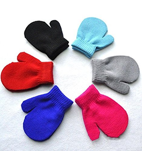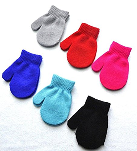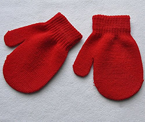 幼児 ベビー ソフト 暖かい手袋 キッズ グローブ 編み ストレッチ ミトン (red)