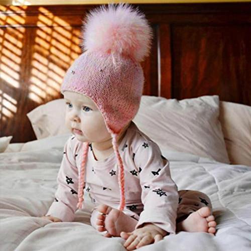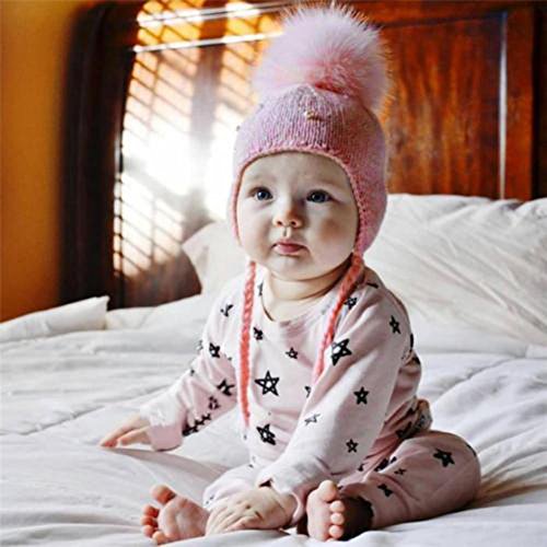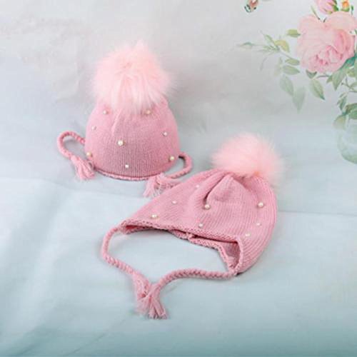 ベビーボーイガールズ 耳付き帽子 ハット キッズクロッシェ 冬ニット キャップ (3-9歳, pink)