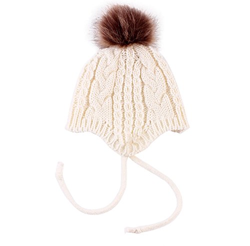 ベビー ニット帽 耳あて ニット ビーニー 帽子 冬 暖かい 耳保護付き ハット 赤ちゃん キッズ 女の子 男の子 (ホワイト)