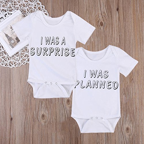 ベビー服 新生児 双生児 ロンパース ボディースーツ マッチング outfit 80cm (6-12M, surprise)