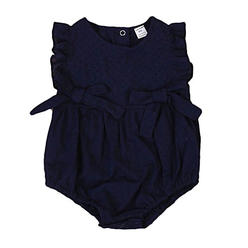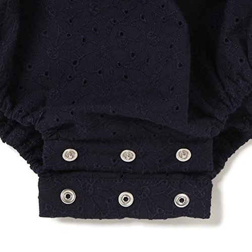新生児 ロンパース シンプル ベビーガールズ 透かし彫り ロンパース 幼児 コットン 花柄 キッズ ジャンプスーツ (90cm, 青い)