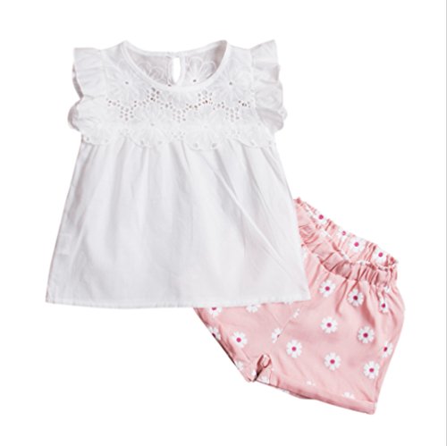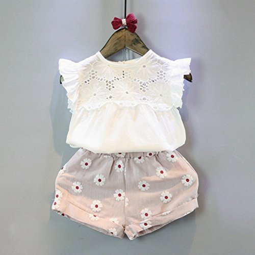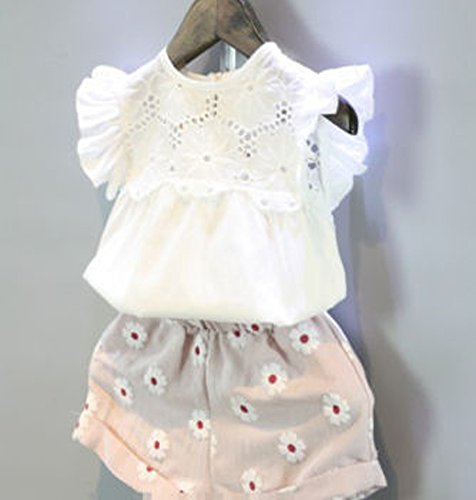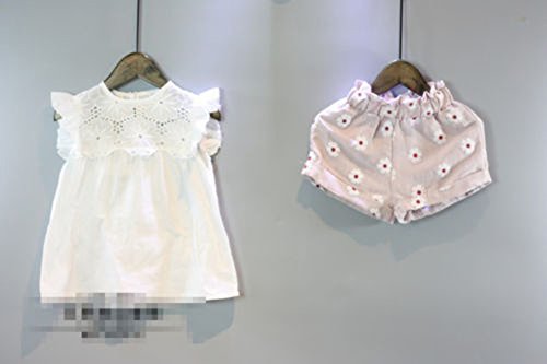 ベビーがルーズ 上下セット レース花柄上着 半ズボンクロースセット 赤ちゃん服 女の子 (120cm)