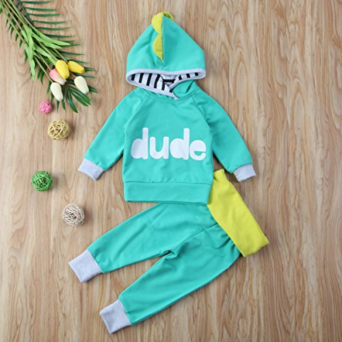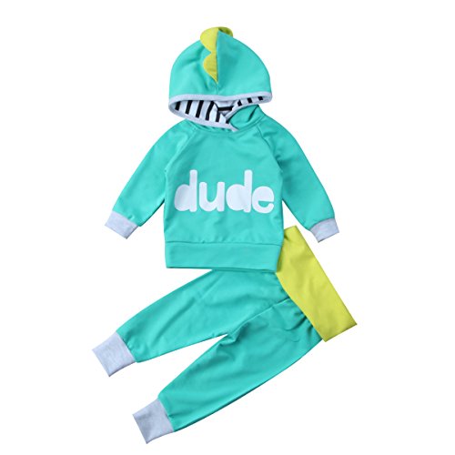 ベビー服 新生児 パーカー+パンツ セット ファッション 帽子付き パーカー 子供 暖かい コート 男の子 (18-24M, グリーン)