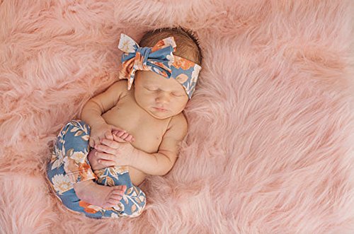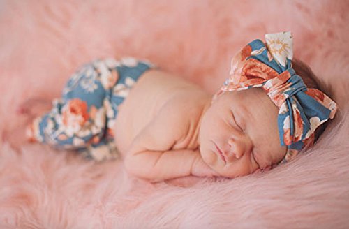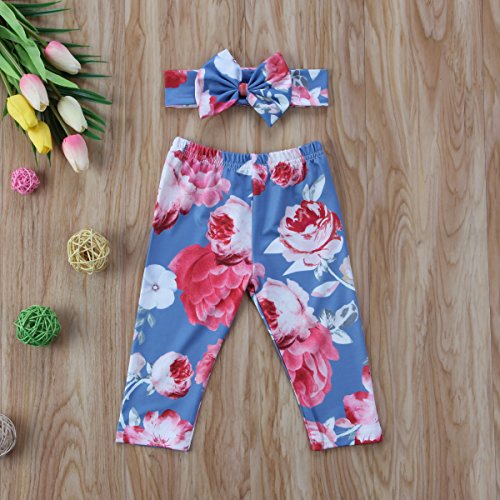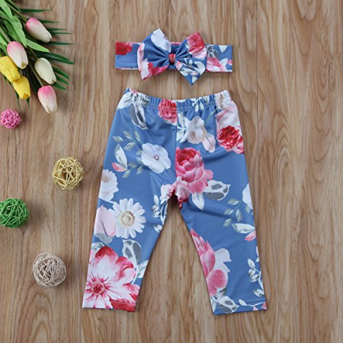 新生児 ベビー服 幼児 赤ちゃん服 花柄 パンツ+ハッドバンド 2点セット 子供服 女の子 ズポン (0-6M , light blue)