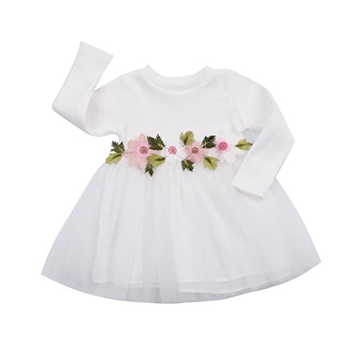 ベビー服 子供服 女の子 秋冬 長袖 ドレス おしゃれ 花柄 薄絹 プリンセス ドレス ワンピース パーティー 結婚式 (ホワイト, 9-18M)