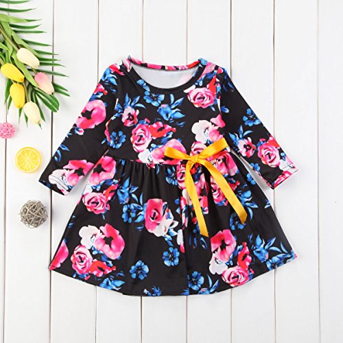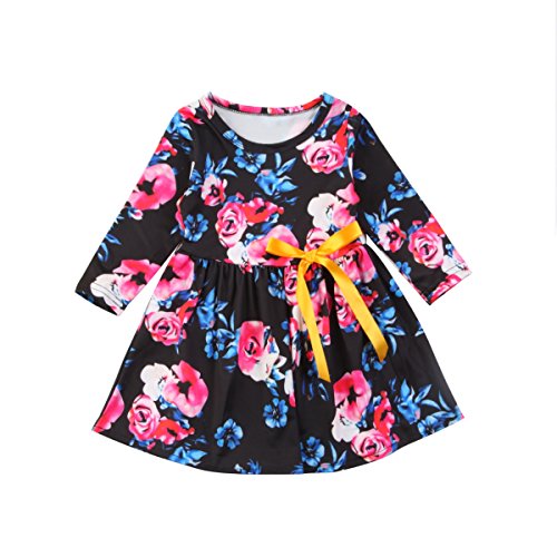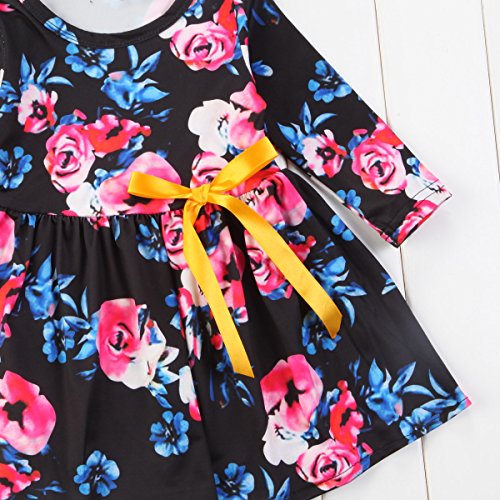 子供服 ベビー 花柄 長袖 ドレス ベビーガールズ 女の子 フローラル チュチュ ドレス 秋冬 ワンピース パーティー 発表会 入学会 プレゼント (1-2歳)