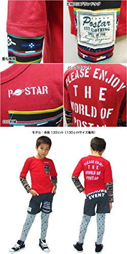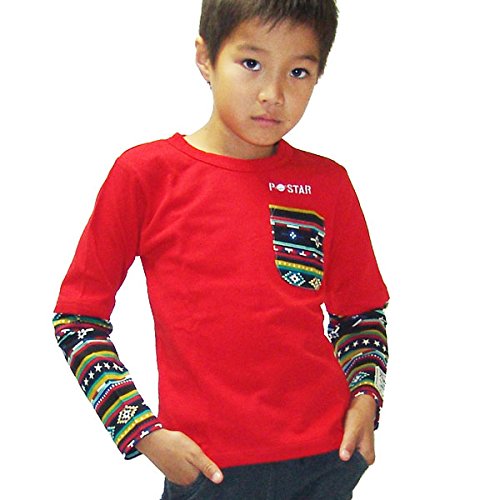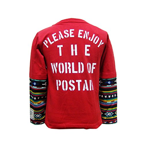 (ポスター) POSTAR ネイティブフェイク キッズ 長袖 Tシャツ レッド 90cm
