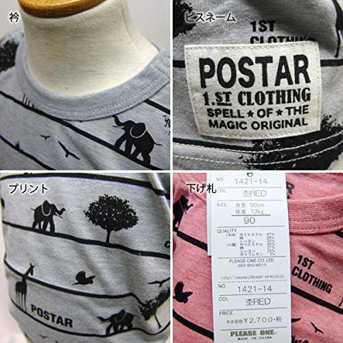 (ポスター) POSTAR サファリプリント TEE キッズ Tシャツ 杢グレー 90cm