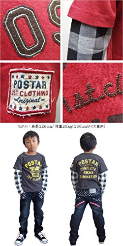 (ポスター) POSTAR フェルトワッペンレイヤード 長袖Tシャツ チャコール 95cm