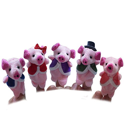 POTOJP 指人形 布の人形 家族みんなで指人形 マペットおもちゃ 縫いぐるみ 子供大好き 安心 布製 物語 童謡 おとぎ話 教育ハンドトイ 知能・五感 を育てる 動物 ごっこ遊び 子豚の物語 5個入り