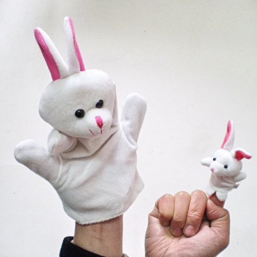 POTOJP 指人形 布の人形 家族みんなで指人形 マペットおもちゃ 縫いぐるみ 子供大好き 安心 布製 物語 童謡 おとぎ話 教育ハンドトイ 知能・五感 を育てる 動物 ごっこ遊び 2個入り (ウサギ)
