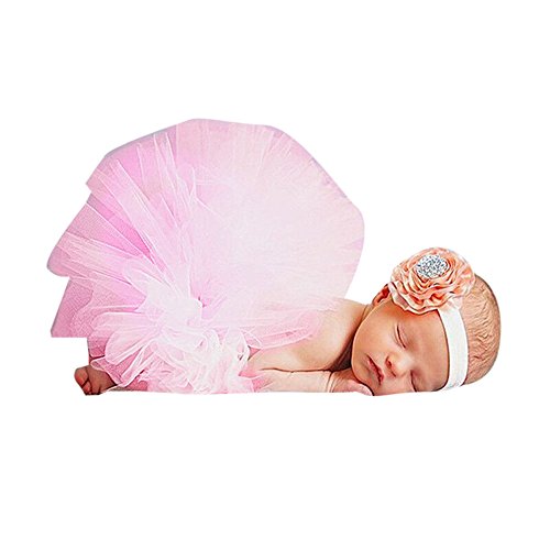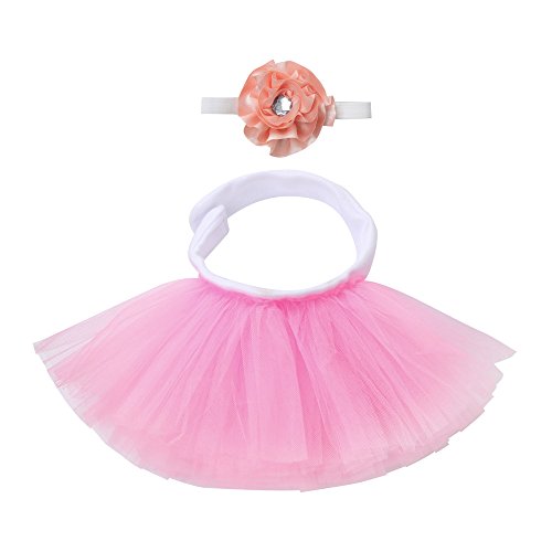POTOJP ベビー服 写真 新生児 赤ちゃん チュチュスカート コスチューム写真 小道具衣装 ドレス 百日記念 記念撮影 写真撮影用 寝相アート 2点セット (ピンク)