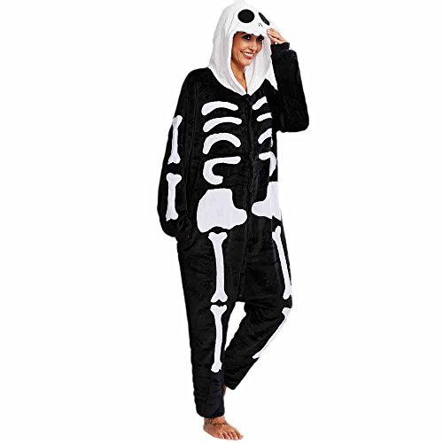 POTOJP 着ぐるみ 大人用 コスプレ 動物ちゃん パジャマ ロンパース 仮装 ダンス衣装 コスチューム 男女共用 防寒着 撮影 寝相アート 日常着 寝間着 (S, スケルトン)