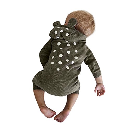 POTOJP 着ぐるみ コスプレ ベビー服 鹿ちゃん 子供用 ロンパース 仮装 ダンス衣装 コスチューム 赤ちゃん 防寒着 撮影 出産祝い 寝相アート 日常着 (100, グレー)