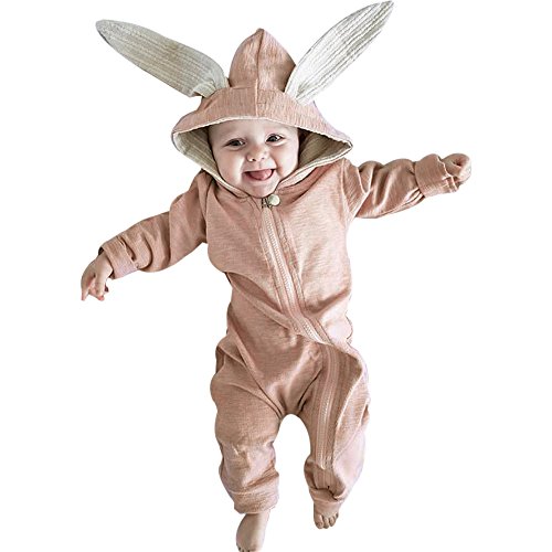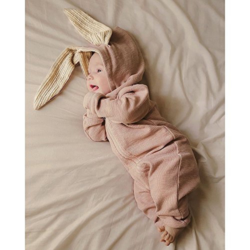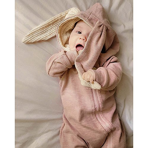 POTOJP 着ぐるみ コスプレ ベビー服 3D ウザギ 子供用 ロンパース 仮装 コスチューム 赤ちゃん 防寒着 クリスマス 撮影 寝相アート 日常着 カバーオール プレゼント/満月/出産祝い (70, ピンク)
