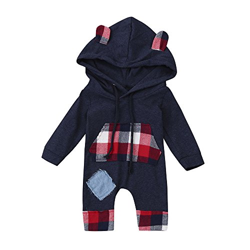 POTOJP 着ぐるみ パッチクマ ロンパース 男女兼用 キッズ ベビー服 子供用 長袖 連体服 赤ちゃん 防寒着 フード付きロ 撮影 出産祝い 寝相アート 日常着 カバーオール (70, Dark Gray)