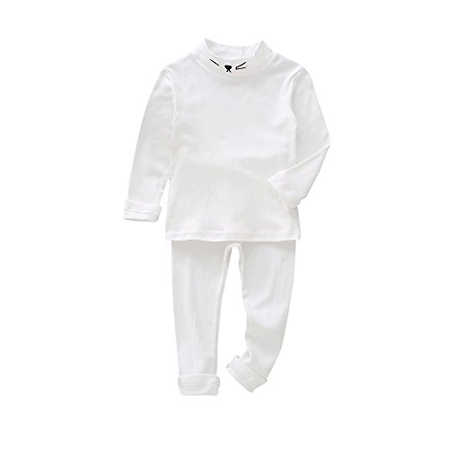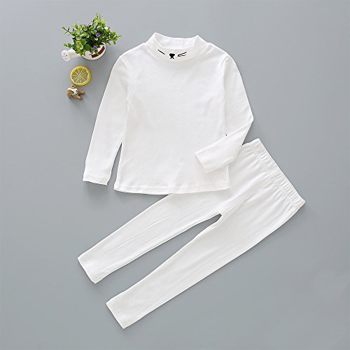 POTOJP 子供用 無地 綿 キッズ パジャマ 長袖 ルームウェア ナイトウェア 寝巻き 寝間着 部屋着 シンプル 上下2点セット 防寒着 ホームサービス (120, ホワイト)