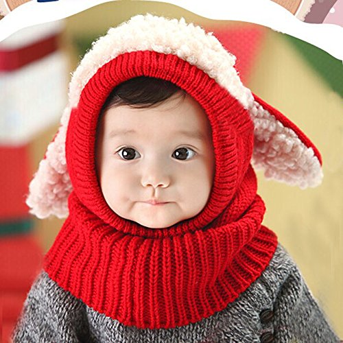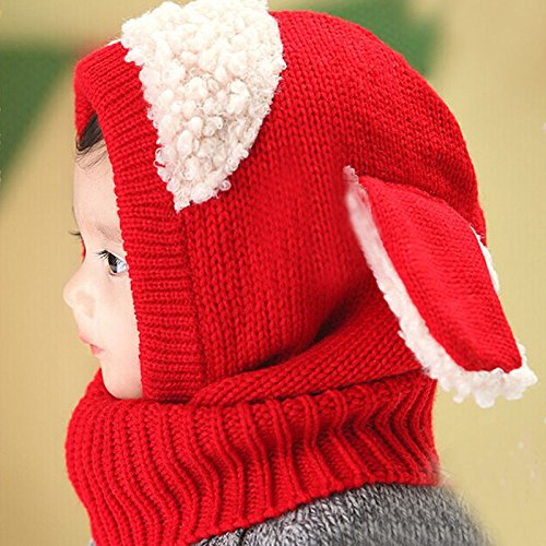 POTOJP うさぎちゃん風 ニット帽子 かわいい 赤ちゃん 帽+マフラー ニット帽 防寒 5色選択可能 冬 暖かい 6ヶ月から36ヶ月まで 誕生日 プレゼント ベビー キッズ 赤ちゃん 子 子供 用 (赤)