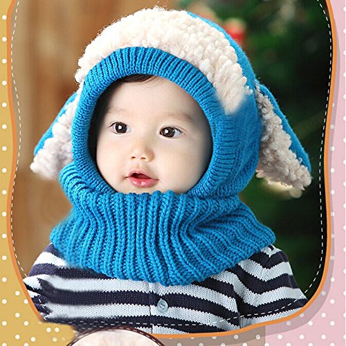 POTOJP うさぎちゃん風 ニット帽子 かわいい 赤ちゃん 帽+マフラー ニット帽 防寒 5色選択可能 冬 暖かい 6ヶ月から36ヶ月まで 誕生日 プレゼント ベビー キッズ 赤ちゃん 子 子供 用 (青)