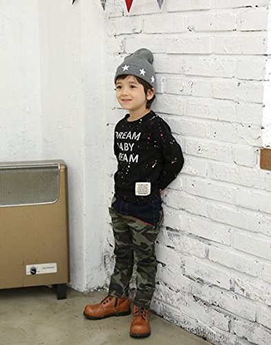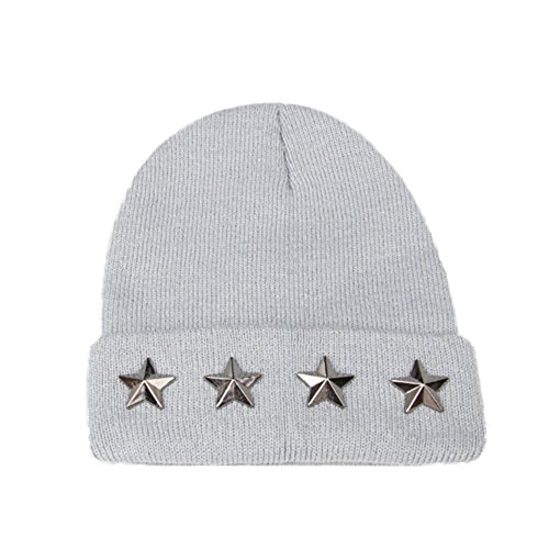 POTOJP カッコイイ スターリベット付け ニット帽子 赤ちゃん 無地 帽子 女の子 男の子 秋冬 防寒・保温 ハット ウールキャップ (GY)