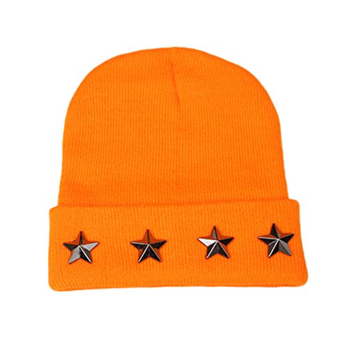 POTOJP カッコイイ スターリベット付け ニット帽子 赤ちゃん 無地 帽子 女の子 男の子 秋冬 防寒・保温 ハット ウールキャップ (OR)